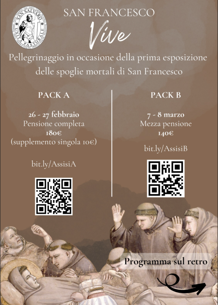 Insieme agli avvisi ricevete la proposta di due viaggi ad Assisi in occasione dell’esposizione delle sacre spoglie di San Francesco.