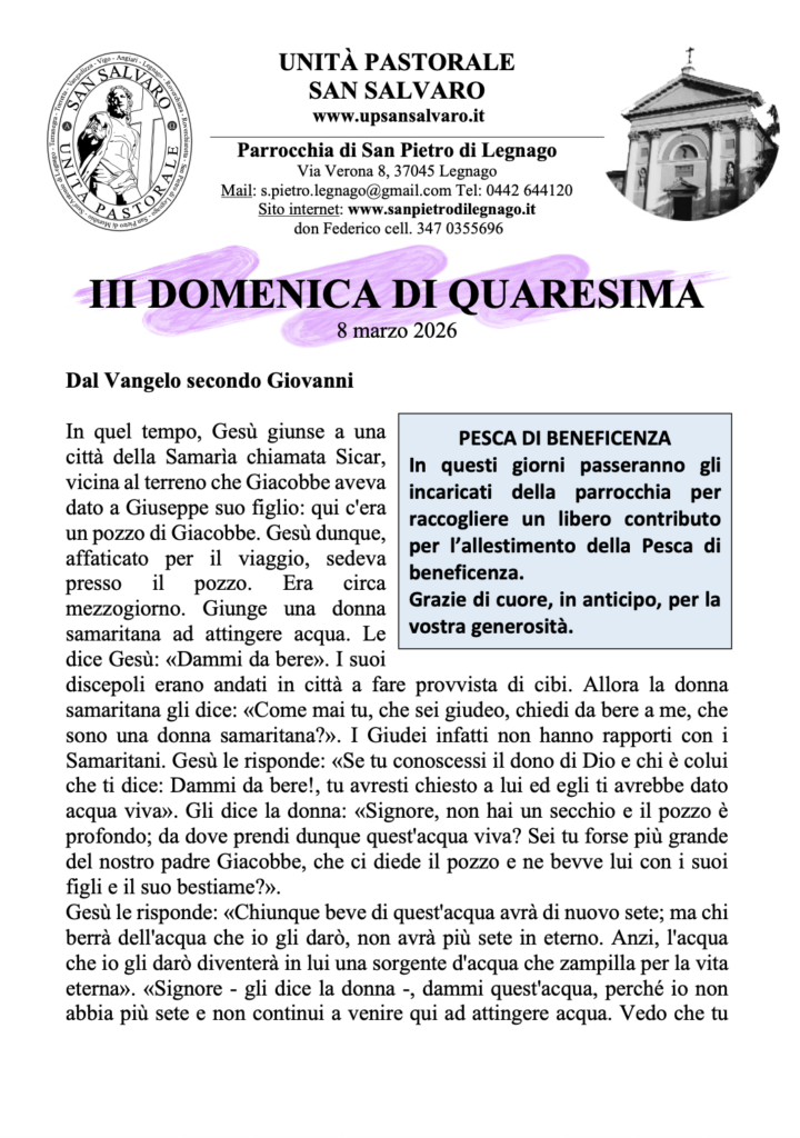 Avvisi Avvisi della settimana – 08 Marzo 2026 10 Marzo 2026 10 Marzo 2026 Riporto ancora il link per per iscrivere i bambini di terza, quarta e quinta primaria al caposcuola https://forms.gle/5HmDNpxscuBrSvc77 Buona domenica Don Federico 260308