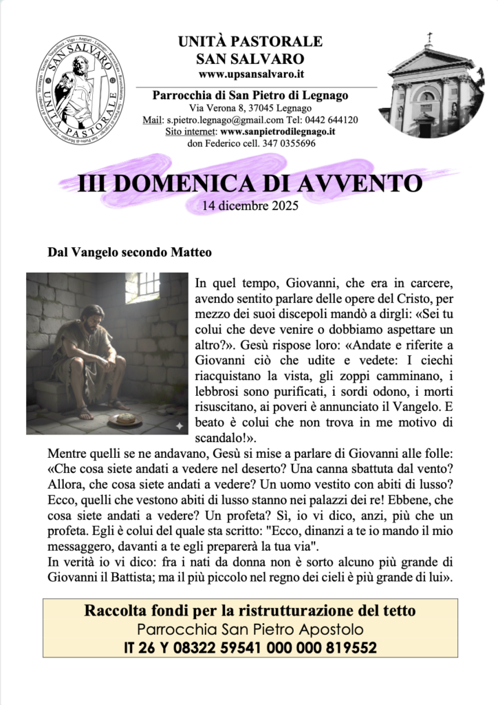 Avvisi Avvisi della settimana – 14 DICEMBRE 2025 15 Dicembre 2025 15 Dicembre 2025 Buona domenica Don Federico