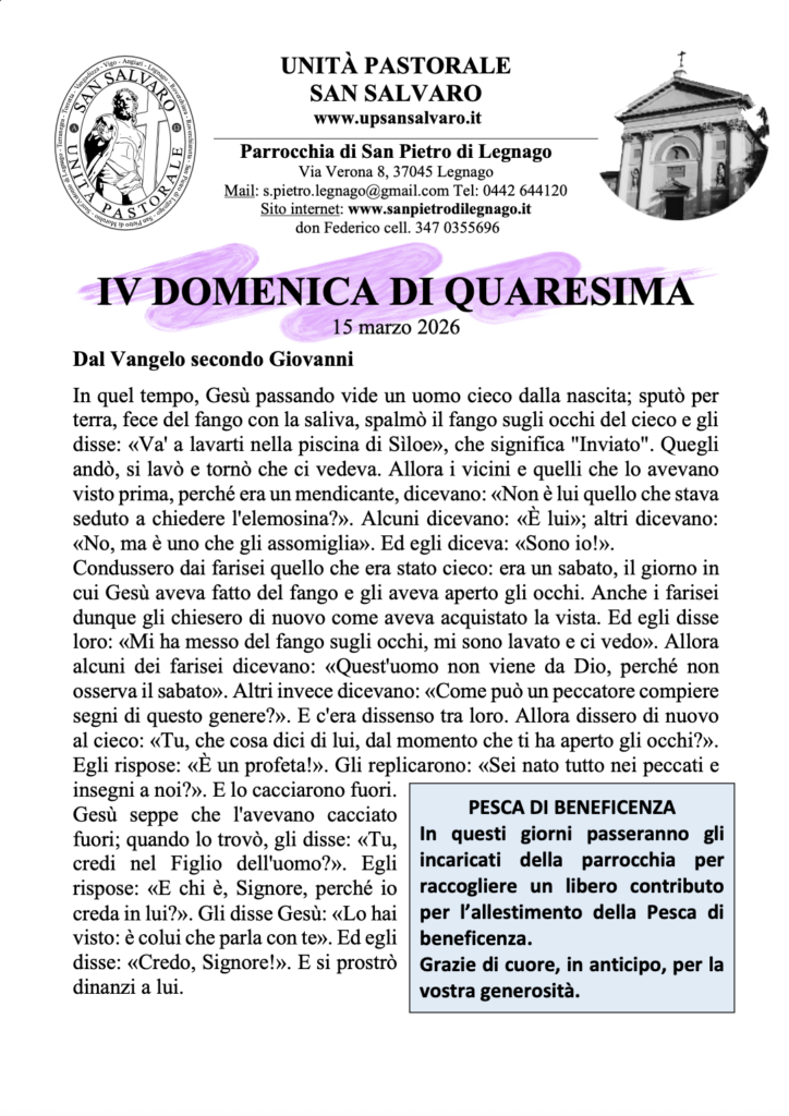 Avvisi Avvisi della settimana – 15 Marzo 2026 14 Marzo 2026 14 Marzo 2026 Oltre agli avvisi allego anche l’avviso della via crucis missionaria. Buona domenica Don Federico