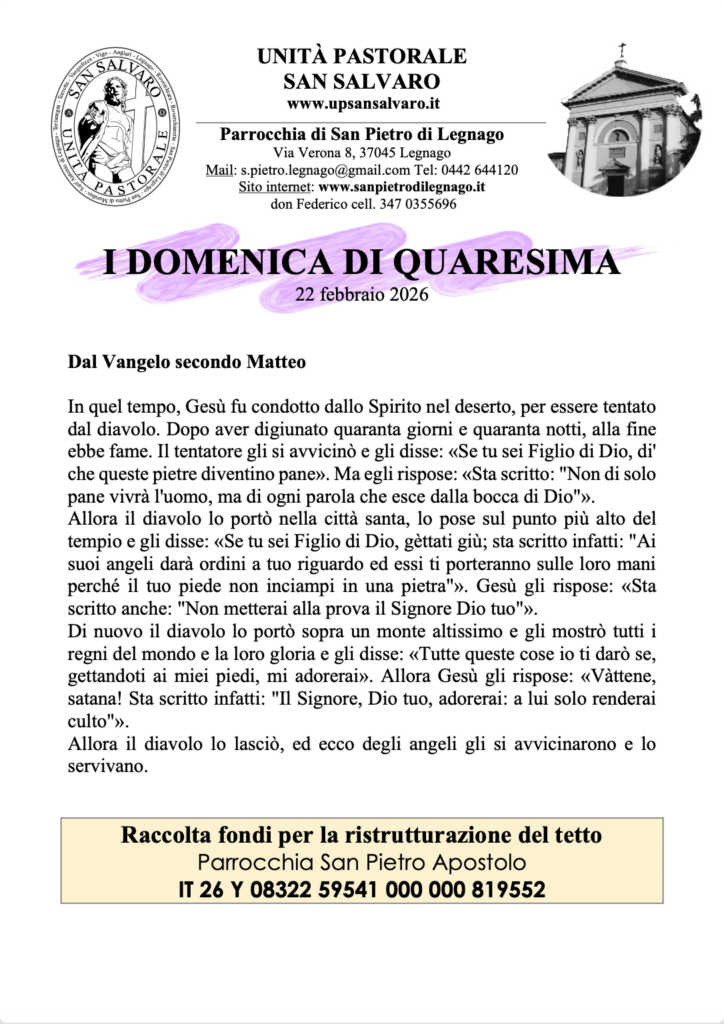 Avvisi Avvisi della settimana – 22 FEBBRAIO 2026 23 Febbraio 2026 23 Febbraio 2026 Questo il link per iscrivere i bambini di terza, quarta e quinta primaria al caposcuola https://forms.gle/5HmDNpxscuBrSvc77 Buona domenica Don Federico